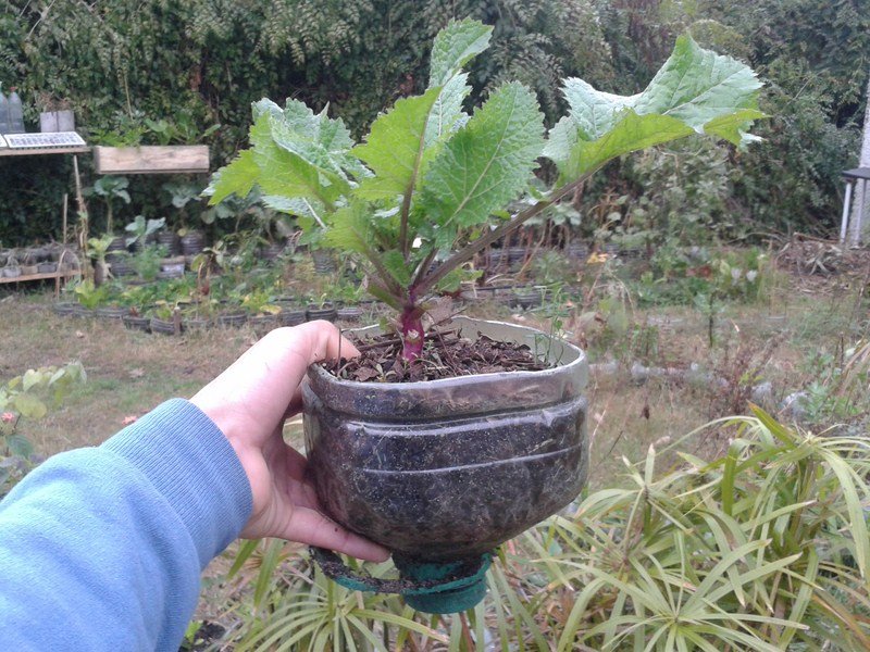 Nosotros optamos por trabajar envases reciclables mayormente de agua entre 5 y 6 litros debido a la gran disponibilidad, aceptable capacidad de sustrato y alineación a nuestra filosofía de Reciclar; el cultivo a piso nos es imposible porque el suelo de la Huerta es pura arena, estamos a 1 cuadra de la playa, realmente entre el sol y el mar.