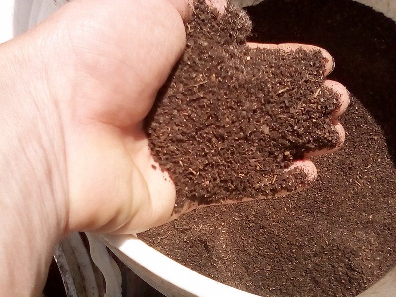 En La Huerta de Sol y Mar utilizamos como sustrato 100% materia vegetal compostada, producto del reciclaje de podas domésticas que recolectamos en el barrio y en la huerta.